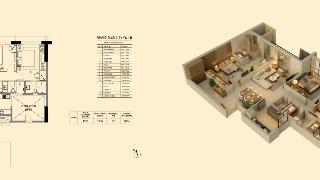 Residents can choose from premium 2, 3 and 4 BHK residences with thoughtfully planned layouts, generous room sizes and large windows that invite ample light and ventilation. The design focus is on privacy, openness and functionality — ideal for contemporary urban living.