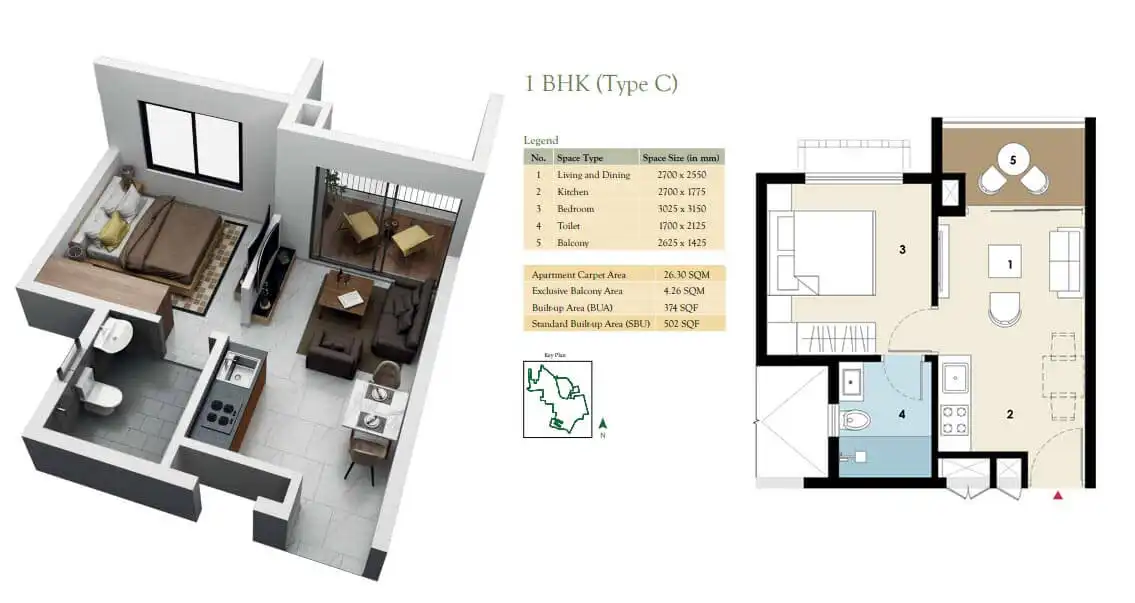 - 502-892 sq ft Super Built Up