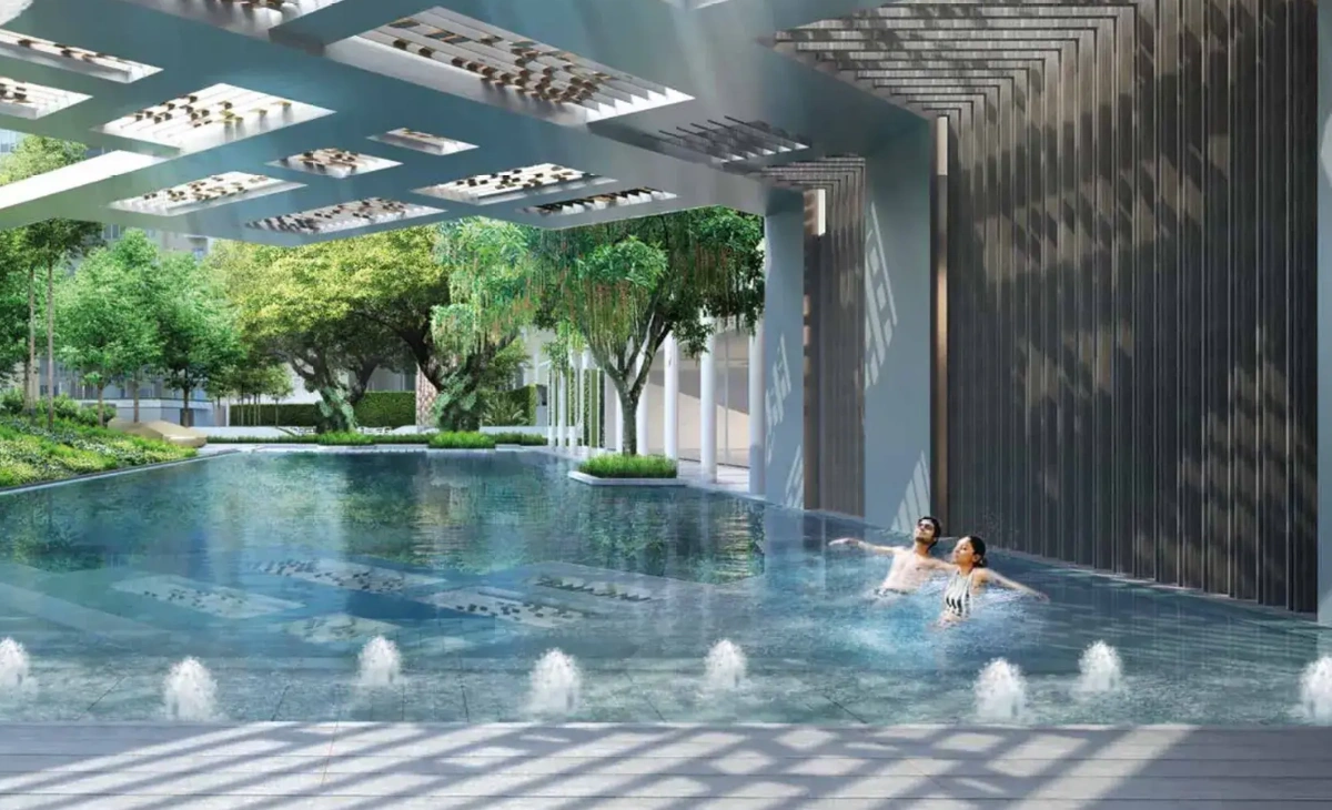 PS Navyom features over 40,000 sq. ft. of leisure and amenities space, designed for relaxation and recreation. It includes a 50-meter-long swimming pool, which adds to the luxury experience.