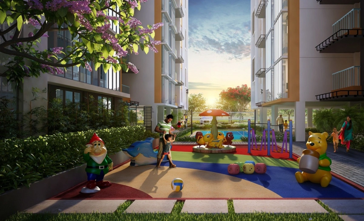 Spread across 2.68 acres, the project consists of 4 towers with 9 floors each, offering around 300 residential units. The development includes essential amenities such as a swimming pool, gymnasium, and clubhouse.